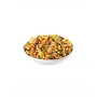 A ready to eat snack which is delicious hot and spicy blend of savoury noodles lentils peanuts rice flakes and sun dried potato chips