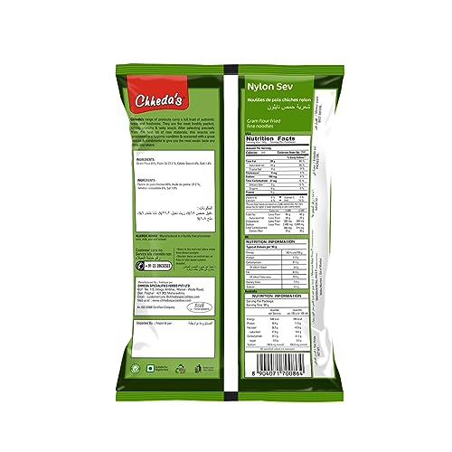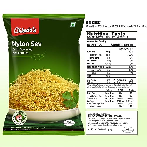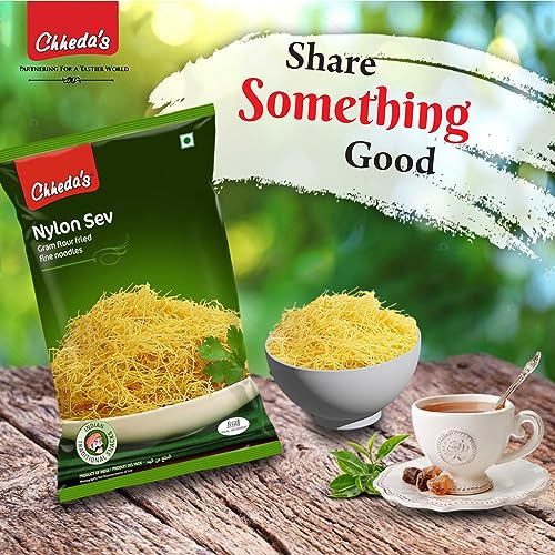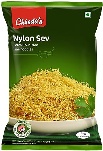 Chheda's Nylon Sev - Barik Sev - Sev Puri Bhel Puri Sev - Extruded Snacks - Fine Sev - Bhujia Sev Salted. Chheda's range of snacks namkeen and other food items which gives you the satisfaction to fill your hunger and also carries with it authentic taste and flavours of India to the diverse parts of the world. We provide low-fat snacks dry namkeen to diet foods Ready To Eat' food which guarantees the taste of handmade food in just a few minutes. Chheda's Nylon Sev is a very basic ingredient used in various chaat recipes. Sev is also an extremely important ingredient in the preparation of chaat items like Bhel Sev Puri Pani Puri Misal Pav etc.