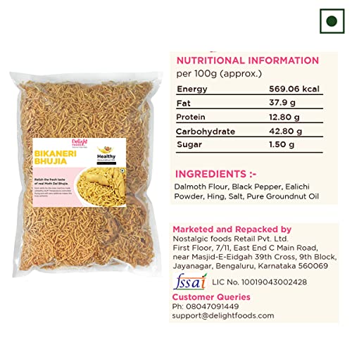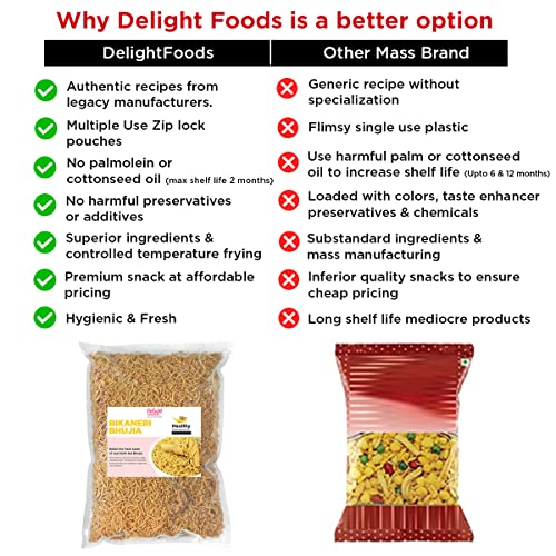 Delight Foods Bikaneri Bhujia 800g Healthy Groundnut Oil Fried Namkeen Moth Dal Bhujiya Indian Snacks No Preservatives