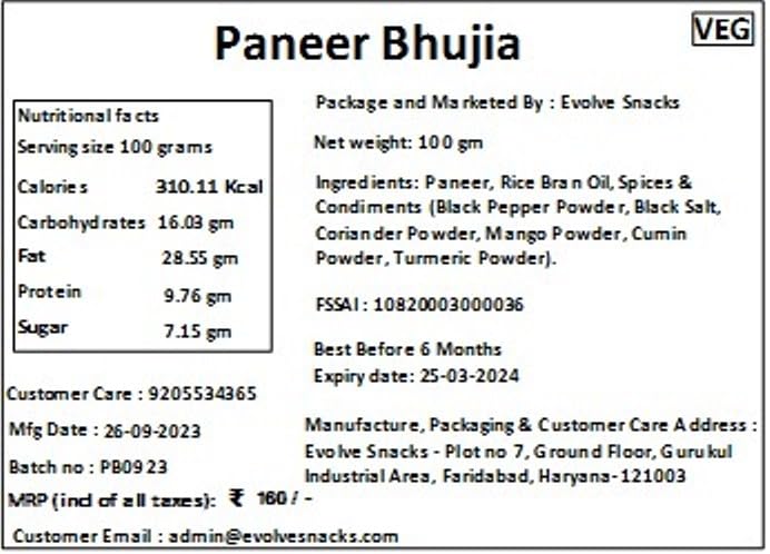 Evolve snacks pvt.Ltd Plot no 7 Evolve snacks pvt ltd sector 38 faridabad Haryana 121003
