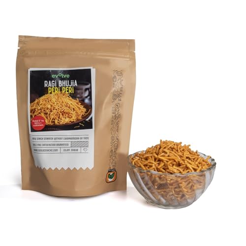 Yummy and crunchy fun that pleases your taste buds. HEALTH BENEFITS Treatment for multiple diseases (Osteoporosis Anemia Diabetes) The main ingredient ragi bhujia helps in weight loss Helps in relieving stress and anxiety. INGREDIENTS: Ragi Flour Chilli peri peri flavor.