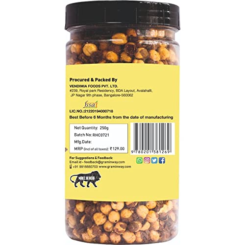 Graminway Roasted Heing Chana is one of the most popular snacks in India and the combination is such an irresistible mix! Heing has traditionally been used in medicinal preparations owing to nutritional properties which include multiple vitamins and minerals. This natural flavor along with a pinch of ghee is believed to boost immunity and improve the gut. Chana or chickpeas like heing have immense benefits. Filled with protein and vitamins chickpeas are so versatile that they can be used in anything from savory dinner preparations to delicious gluten-free desserts. Graminway's Roasted Heing Chana is made with hand-roasted chickpeas and heing which come together to let you indulge your snack carving!