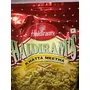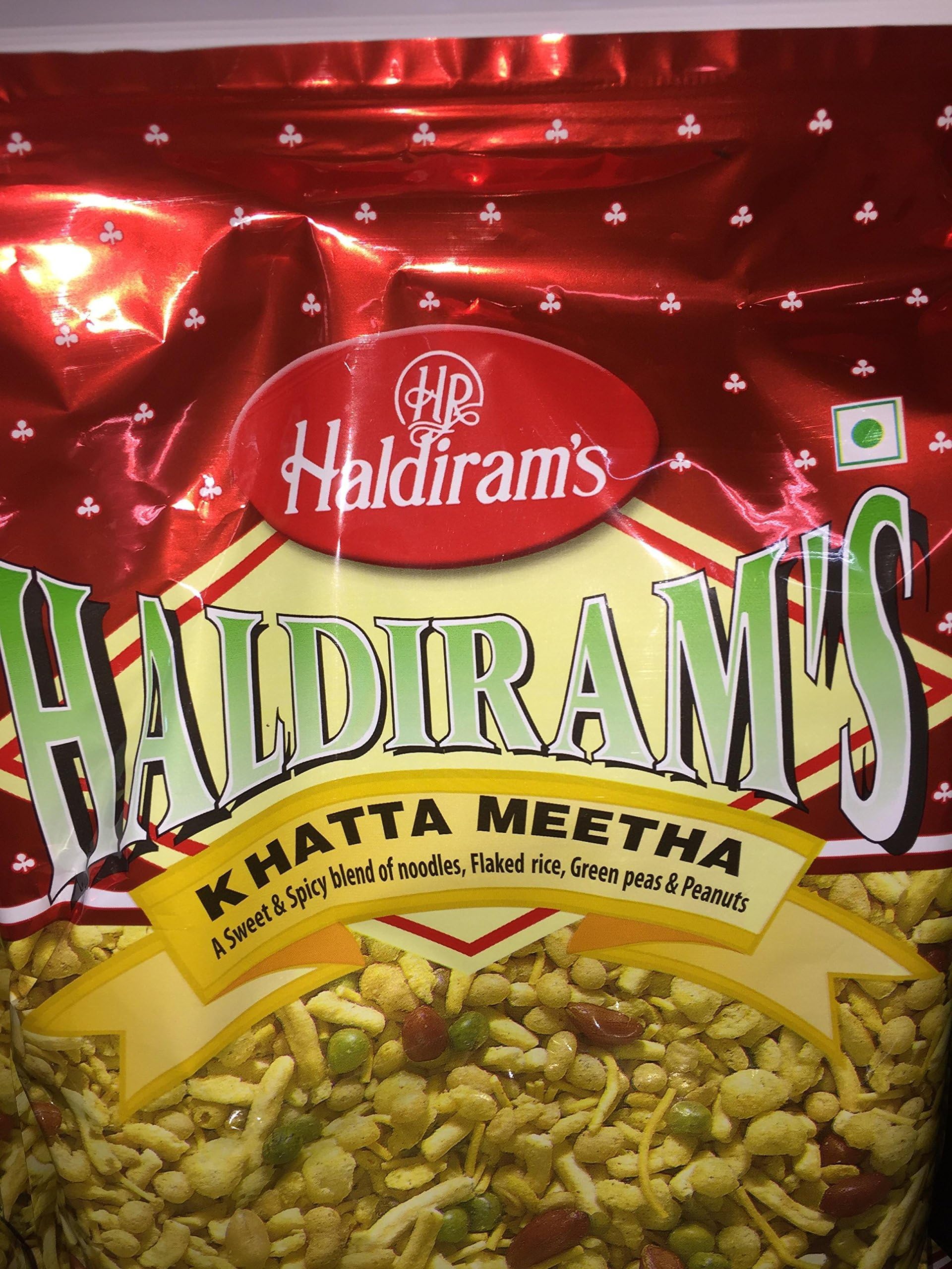 A sweet and spicy blend of noodles flaked rice green peas and peanuts