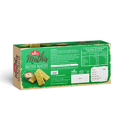 Savor the irresistible crunch and subtle bitterness of Haldiram's Methi Mathri a classic Indian snack that brings together the goodness of fenugreek (methi) and aromatic spices. Made with a perfectly seasoned dough these mathris are deepfried to golden perfection creating a crispy flaky texture with each bite. The distinct flavor of fenugreek adds a unique slightly earthy taste beautifully balanced by a medley of spices like cumin ajwain and salt. This snack is perfect for those who enjoy a savory treat with a hint of bitterness and spice. Ideal for pairing with tea or as a standalone snack Haldiram's Methi Mathri offers a deliciously crunchy experience that will leave you craving more.
