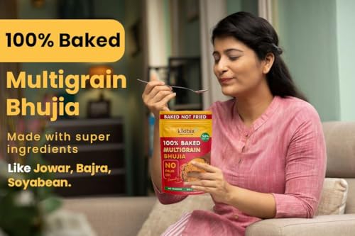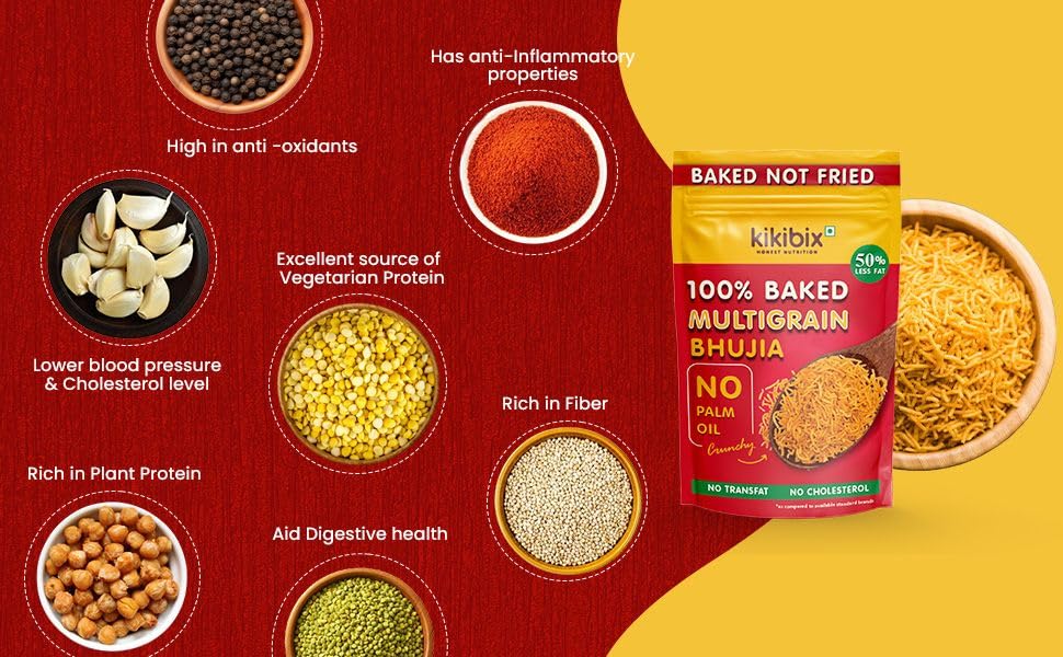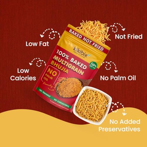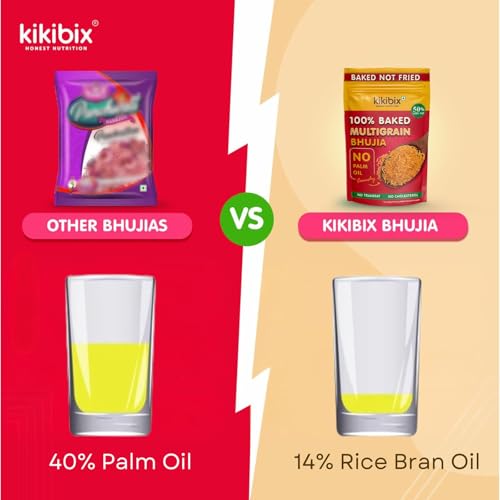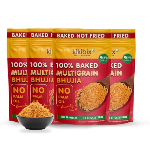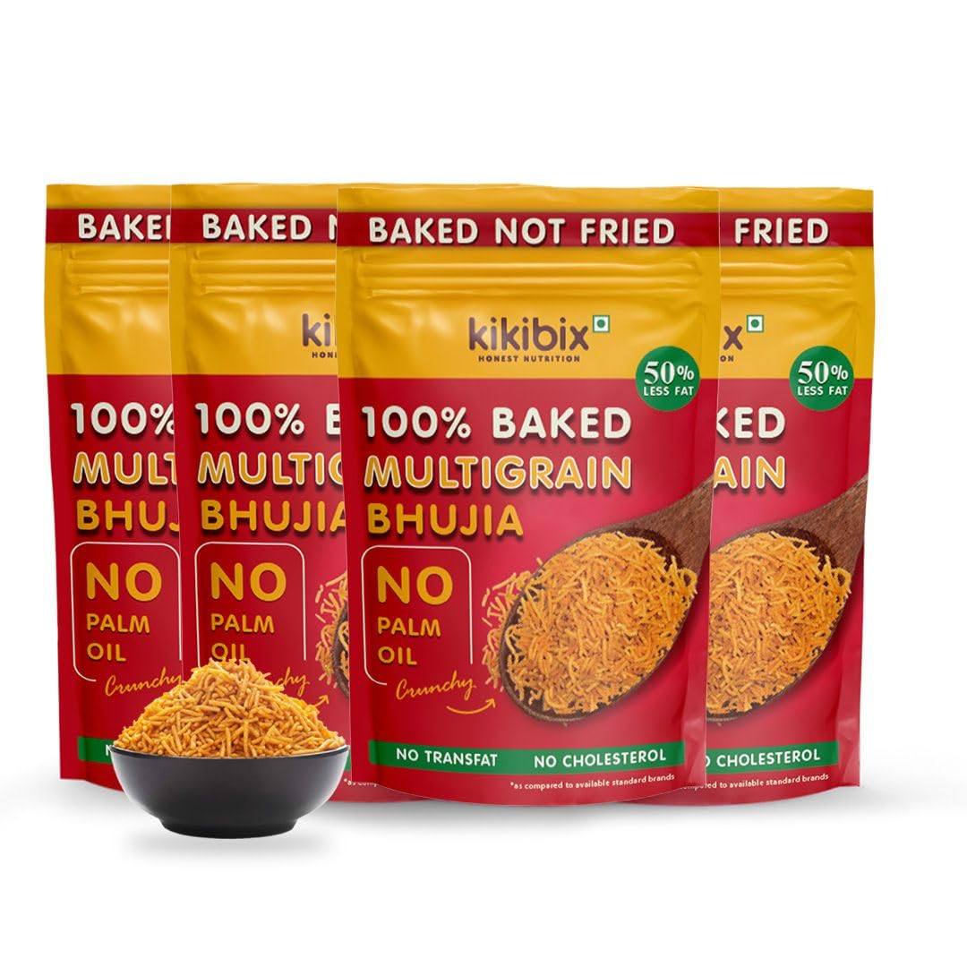 HomeGrocerySnacksNamkeenKikibix 100% Baked Multigrain Bhujia Namkeen Healthy Snacks for adults & kids Low Fat Low Calories High Protein Bhujiya Diet Mixture for diabetics- No Palm Oil Baked Not Fried - Pack of 4