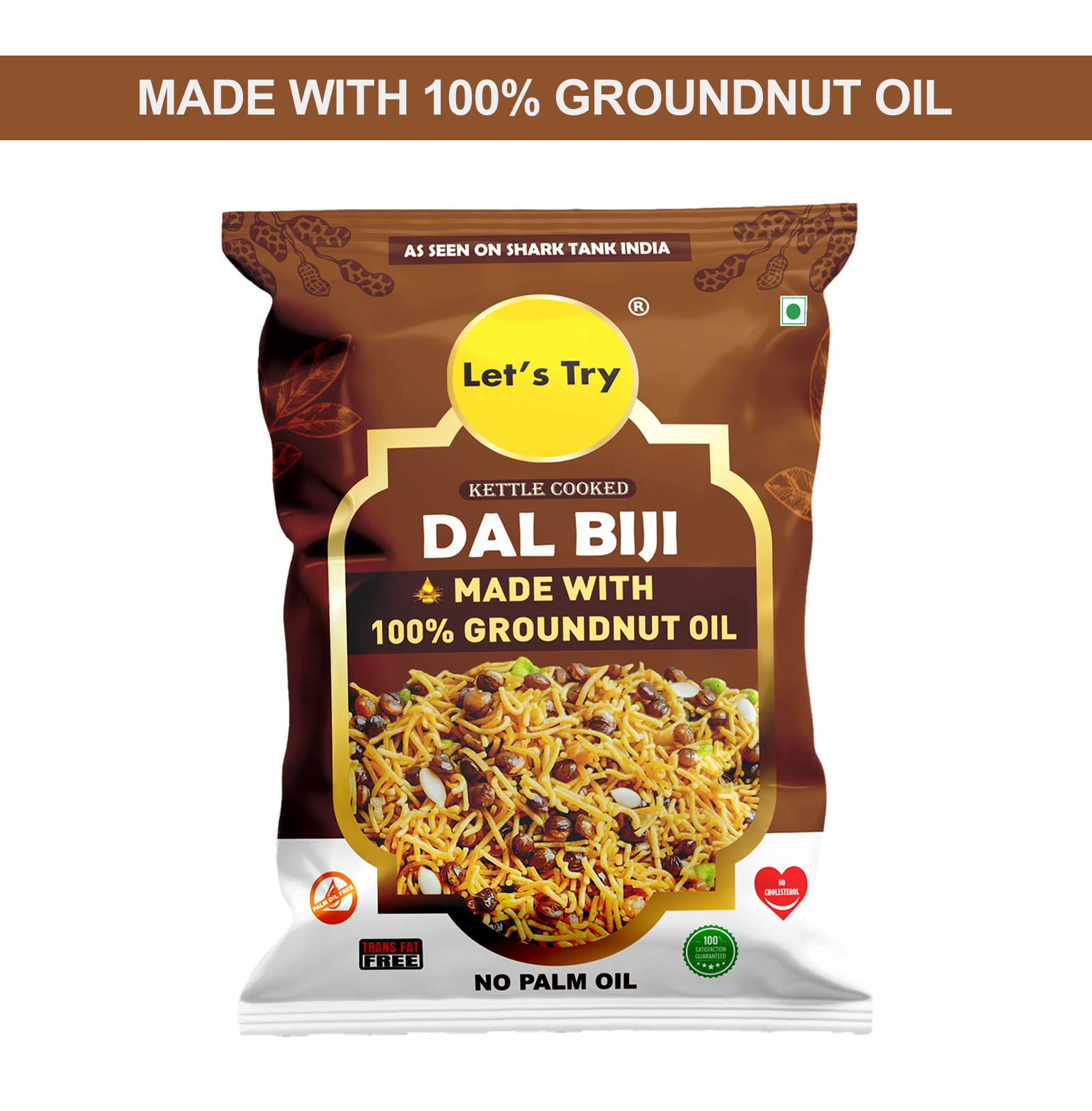 At Lets Try, we believe healthy snacking can be fun too. We follow traditional methods to make all our snacks, just like your grandma used to. We use 100% groundnut oil. No preservatives, No artificial flavors, or colors, no trans fats or cholesterol