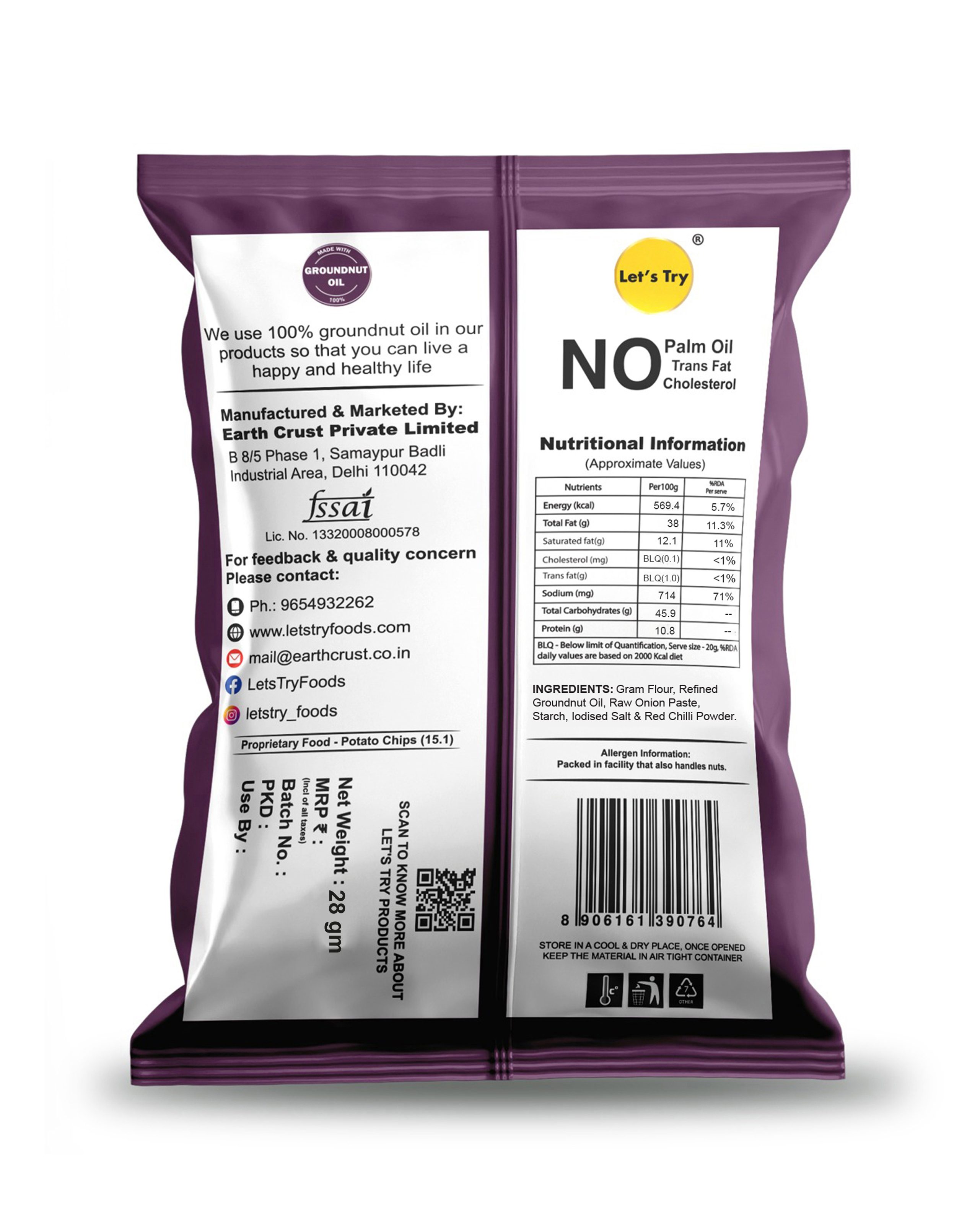 At Lets Try, we believe healthy snacking can be fun too. We follow traditional methods to make all our snacks, just like your grandma used to. We use 100% groundnut oil. No preservatives, No artificial flavors, or colors, no trans fats or cholesterol