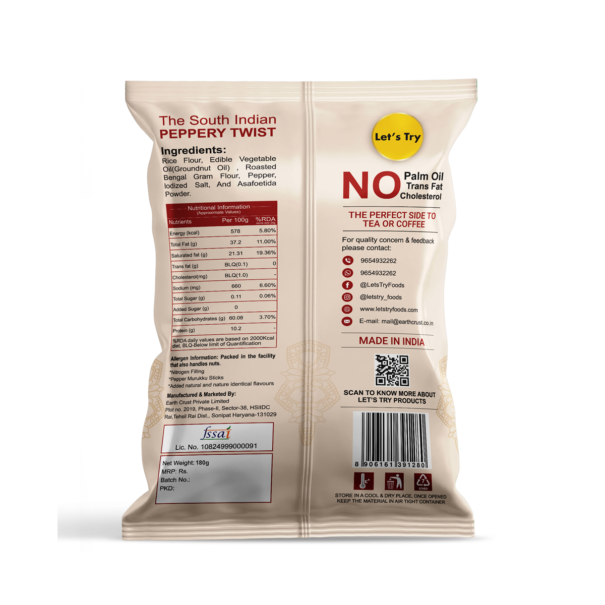 Let's Try Pepper Murukku Sticks 180 GRAM