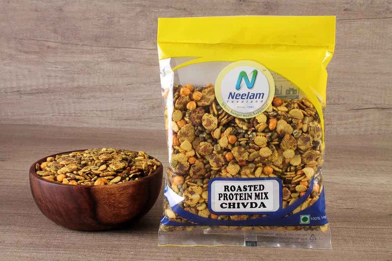 Neelam Foodland Crispy and Delicious Roasted Protein Chivda: A perfect snack that can be enjoyed anytime anywhere A healthier and calorie-consious alternative to deep-fried snacks. It can be enjoyed plain or Garnish it with various dressings for an added taste. One can also take along a snack box filled with Chivda to school or office for easy snacking. It will be a good combination with juice or milk shakes. Tea-time is never complete without dry snacks. Enjoy them in your next party.