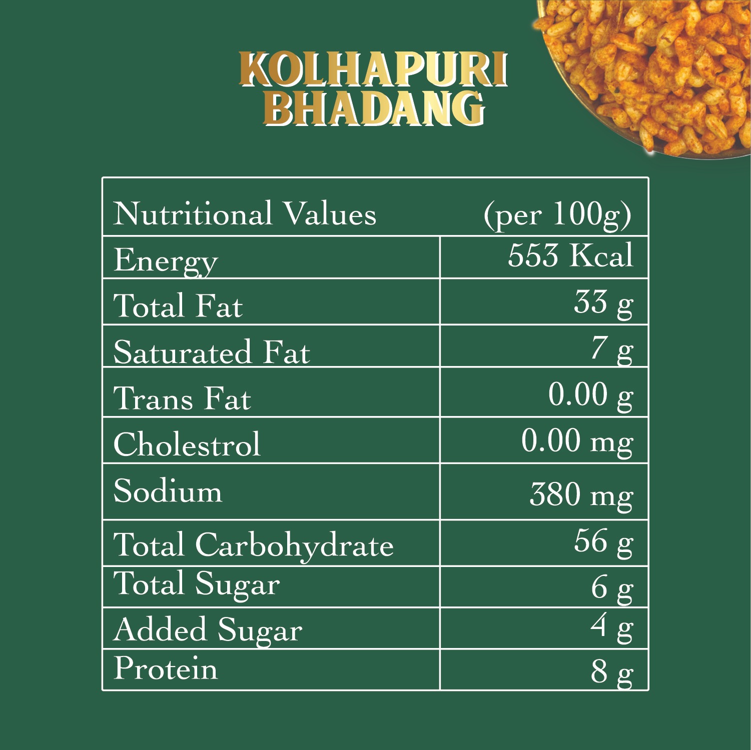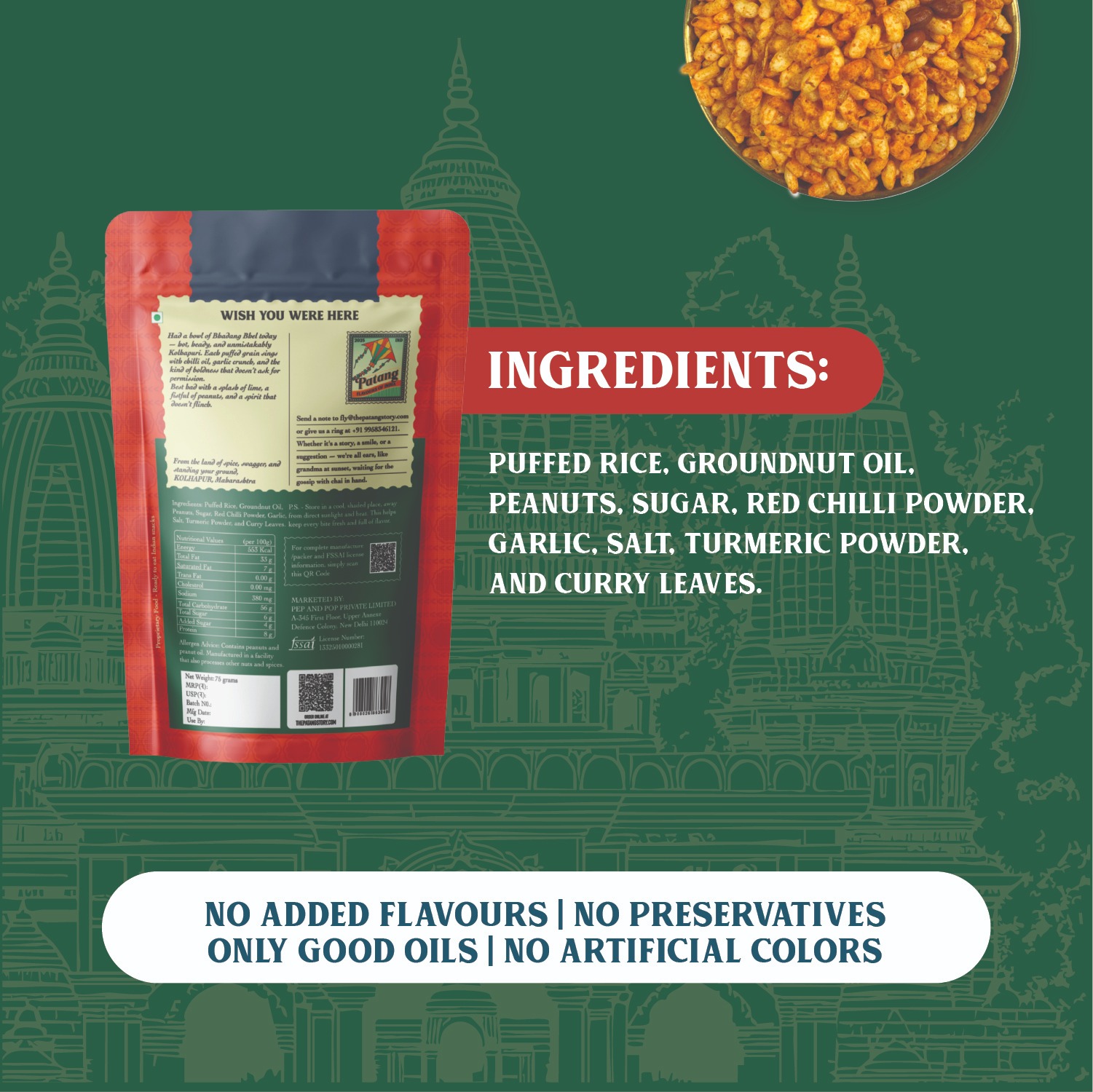 • Bold Kolhapuri flavor: Fiery puffed rice snack seasoned with roasted garlic, red chilli, mustard seeds, and authentic Kolhapuri masala.