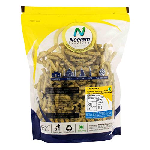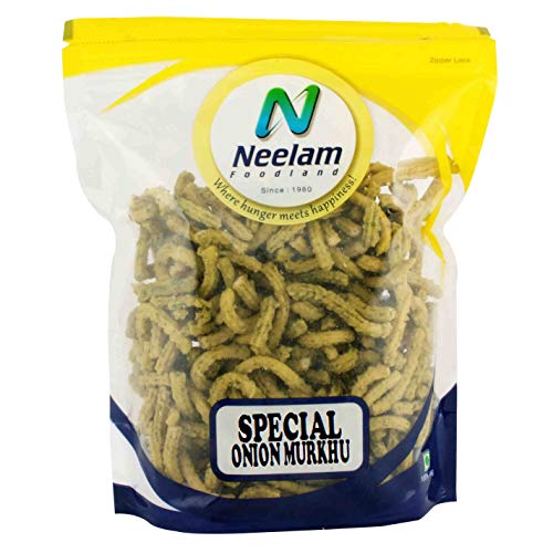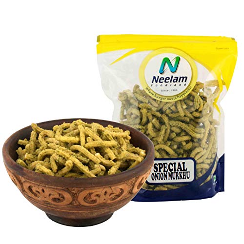 Neelam Foodland Special Onion Murkhu: Murkhu is a savory crunchy snack from the Tamil/Kerala cuisine of India and Sri Lanka. The snack's name derives from the Tamil word for "twisted" which refers to its shape. While it is perfect to have on a cold rainy day with a cup of chaai this versatile snack is also light enough to enjoy on a hot summers day with a glass of juice or to take along to school or office in a snack box!