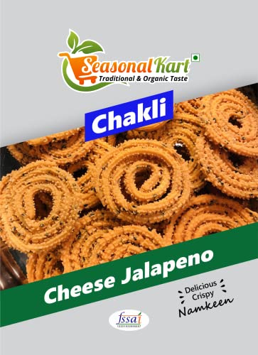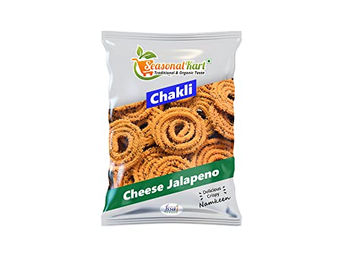 Cheese Jalapeno Chakli made with the best quality ingredients While it is perfect to have on a cold rainy day with a cup of chaai this versatile snack is also light enough to enjoy on a hot summer's day with a glass of juice or to take along to school or office in a snack box Tea-time is never complete without dry snacks. Carry a pouch of chakli to enjoy mini office breaks or on picnics. A perfect to have on a cold rainy day with a cup of chai this versatile snack is also light enough to enjoy on a hot summer's day with a glass of juice or to take along to school or office in a snack box!