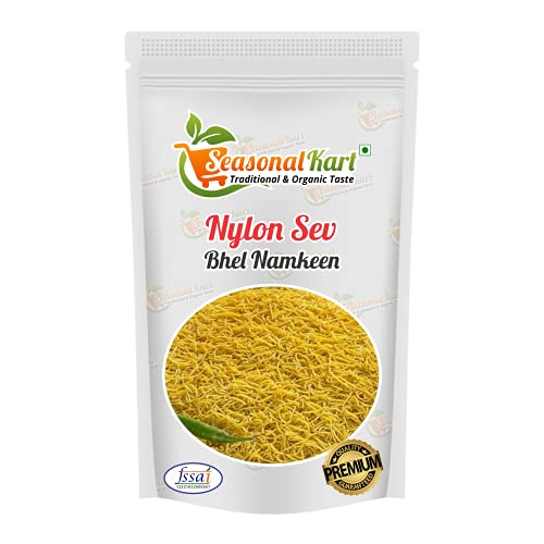 Seasonal Kart Nylon Sev Barik Sev Namkeen | Nylon Sev Nylon Namkeen Sev For Bhel Chaat and Sevpuri Chat Papdi Sev Non-Spicy Namkeen Indian Snack |Bhel Puri Sev|About Us:We believe that our reputation must be based on the quality of our products. We have traveled across the country to handpick the finest quality products at the best possible rates. We maintain great taste and guaranteed quality throughout the year and our products are sure to be your new favorites after your first purchase.About Product:Nylon Sev - Barik Sev - Sev Puri Bhel Puri Sev - Extruded Snacks - Fine Sev - Bhujia Sev Salted. Nylon Sev is a very basic ingredient used in various chaat recipes. Sev is also an extremely important ingredient in the preparation of chaat items like Bhel Sev Puri Pani Puri Misal Pav etc. Khatta Meetha Mixture is a famous mixture that people of all age groups enjoy. Its sweet and sour taste makes it a hot favorite of kids. It is not only a go-to snack for kids but also for adults as it is not as spicy as the rest of the namkeens available in the market. Its unique blend of ingredients makes it loved by all.Ingredients:Dehusked Bengal Gram Flour (Besan)(51%) Refined Palmolein Oil Corn Starch and Iodised saltCountry of Origin: IndiaSeasonal Kart: Traditional & Organic Taste