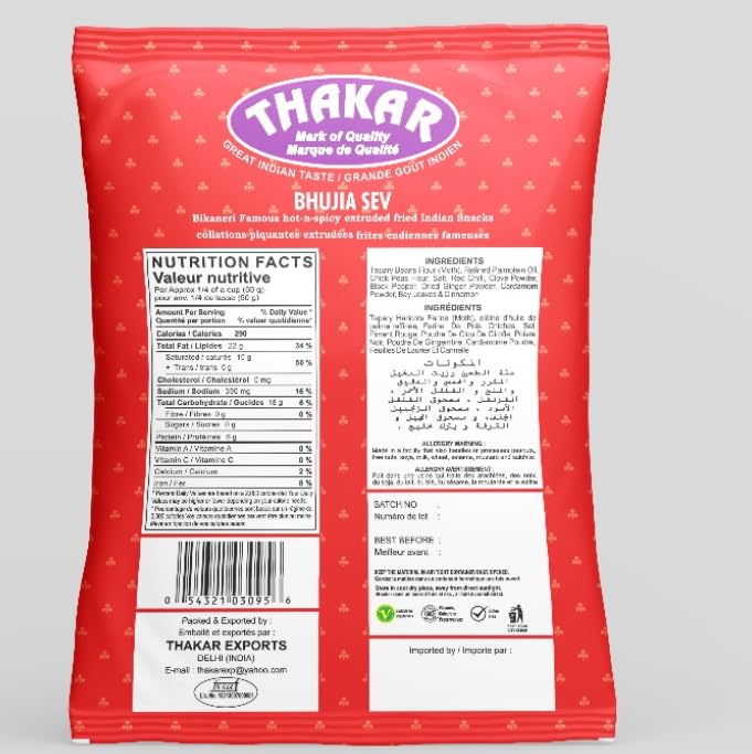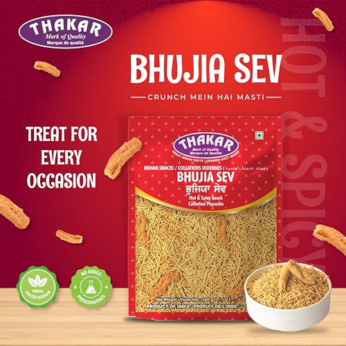Thakar Bhujia Sev is a popular snack in India with a delicious flavor that comes from high-quality ingredients and a blend of spices. It has a crispy and spicy texture and is free of artificial colors and preservatives. It comes in a 340g pack that is great for sharing at parties or satisfying cravings. This traditional Indian snack has been enjoyed for generations and is a must-try for anyone looking for an authentic taste.