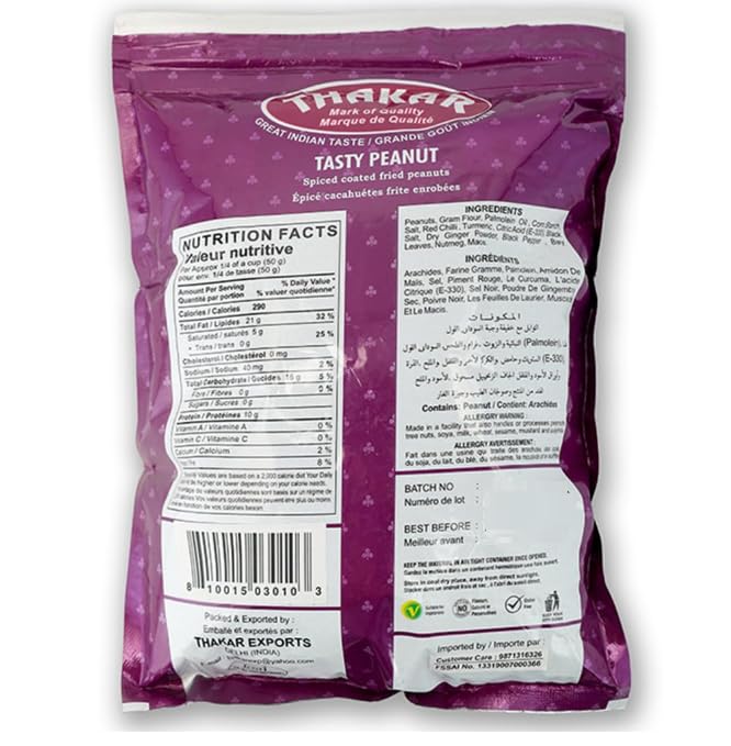 Thakar Tasty Peanut is a delicious snack made from selected peanuts that are roasted perfectly and contains protein without artificial additives. It comes in convenient packaging for snacking or sharing and is versatile for use in different dishes. It is gluten-free making it suitable for various diets and offers an irresistible snacking experience.