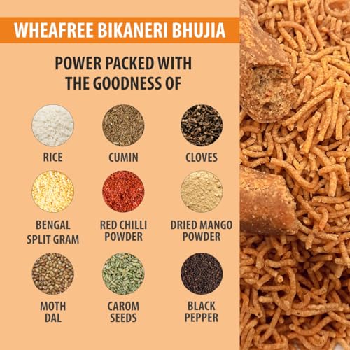 Perfect Tea-Time Snack: With its crunchy texture and bold flavours Wheafree Bikaneri Bhujia is an ideal gluten-free snack to pair with tea or coffee. The inclusion of Ginger Paste and Cloves not only enhances the taste but also provides digestive support