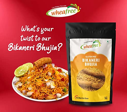 Wheafree Gluten-Free Bikaneri Bhujia Sev | Crunchy Namkeen Snack | Made with Gram Flour Besan & Authentic Rajasthani Spices | Healthy Celiac-Friendly Snack | Perfect Tea-Time Snack | Pack of 2 x 400g each