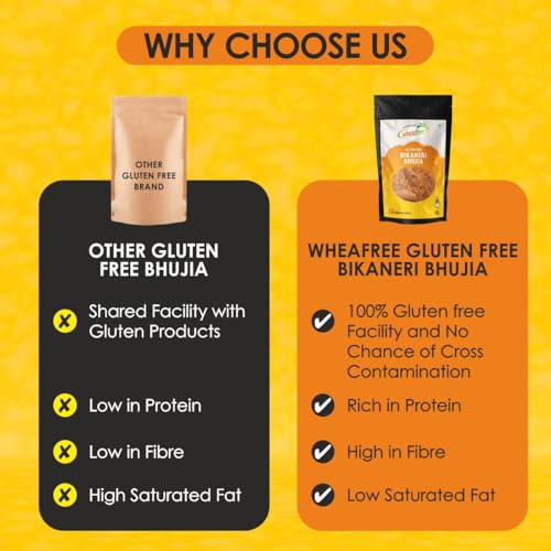 Gluten-Free Goodness: Wheafree Bikaneri Bhujia is made with gluten-free ingredients like Bengal Split Gram Flour and Rice Flour making it an excellent choice for those with celiac disease or gluten intolerance. The gram flour offers a healthy dose of prot