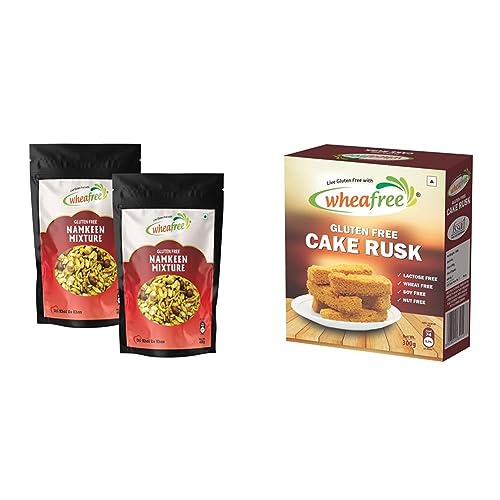 Wheafree Gluten Free Namkeen Mixture - Pack of 2 (400g each) | Delicious Ready to Eat Indian Snacks | Tasty Crispy & Crunchy Savoury Snacks | Tangy and Spicy FlavourWheafree Namkeen is the ultimate comfort gluten free snack. To enhance the taste of your food you can also add our Namkeen on the top of your salads chaats and bhel and add the crispy and crunchy element to your dish. Our namkeen range has Namkeen Mixture Bikaneri Bhujia Masala Chana Dal Boondi and Namkeen Titbits. Made with premium quality ingredients Wheafree Snacks are your perfect snack partner. Share it with your loved ones and guests on your normal days or on special occasions.Wheafree Gluten Free Cake Rusk (300 Grams) Non-Veg | Tasty Crunchy and Crispy | Best Tea Time Snacks | No Maida | 100% Wholesome IngredientsGluten Free Cake Rusk - 300gmOur Cake Rusk is crunchy and crispy. They are the perfect tea/coffee time snacks.