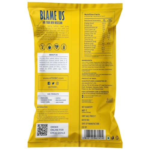 Cheese Popcorn- With the most indulgent cheesy flavour this popcorn will take you on a journey to the streets of England with its original Cheddar flavour. It is crunchy luxuriously seasoned and made with the best quality kernels. Our Cheese Popcorn is ma