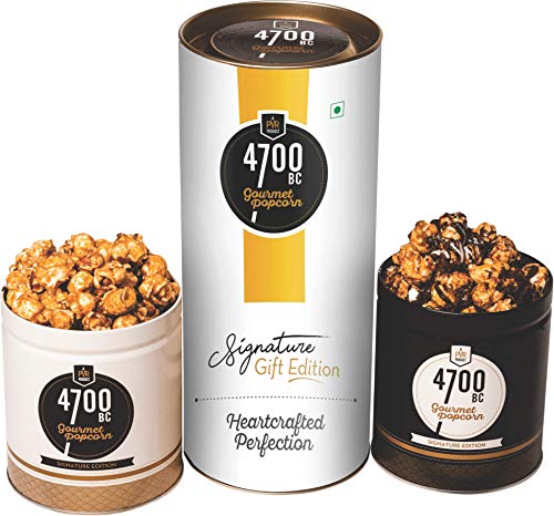 This exclusive combo gift pack brings to you our heartcrafted delicious gourmet popcorn comprising the flavours of Sour Cream and Wasabi Himalayan Salt Caramel and Nutty Tuxedo Chocolate popcorn.