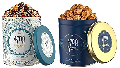 4700BC Gourmet Popcorn Nutty Tuxedo Chocolate Tin 375gIndulge in 4700BC Gourmet Popcorn coated with dark milk and white chocolate balanced with crunchy almonds. Packed in an exquisite contemporary and extremely durable tin that can be reused for endless purposes. A perfect snack for chocolate lovers!4700BC Gourmet Popcorn Himalayan Salt Caramel Tin 110gIndulge in 4700BC Gourmet Popcorn coated with delicious caramel and sprinkled with exotic Himalayan salt. Packed in an exquisite contemporary and extremely durable tin that can be reused for endless purposes. An absolutely enjoyable snack filled with lip-smacking flavour.