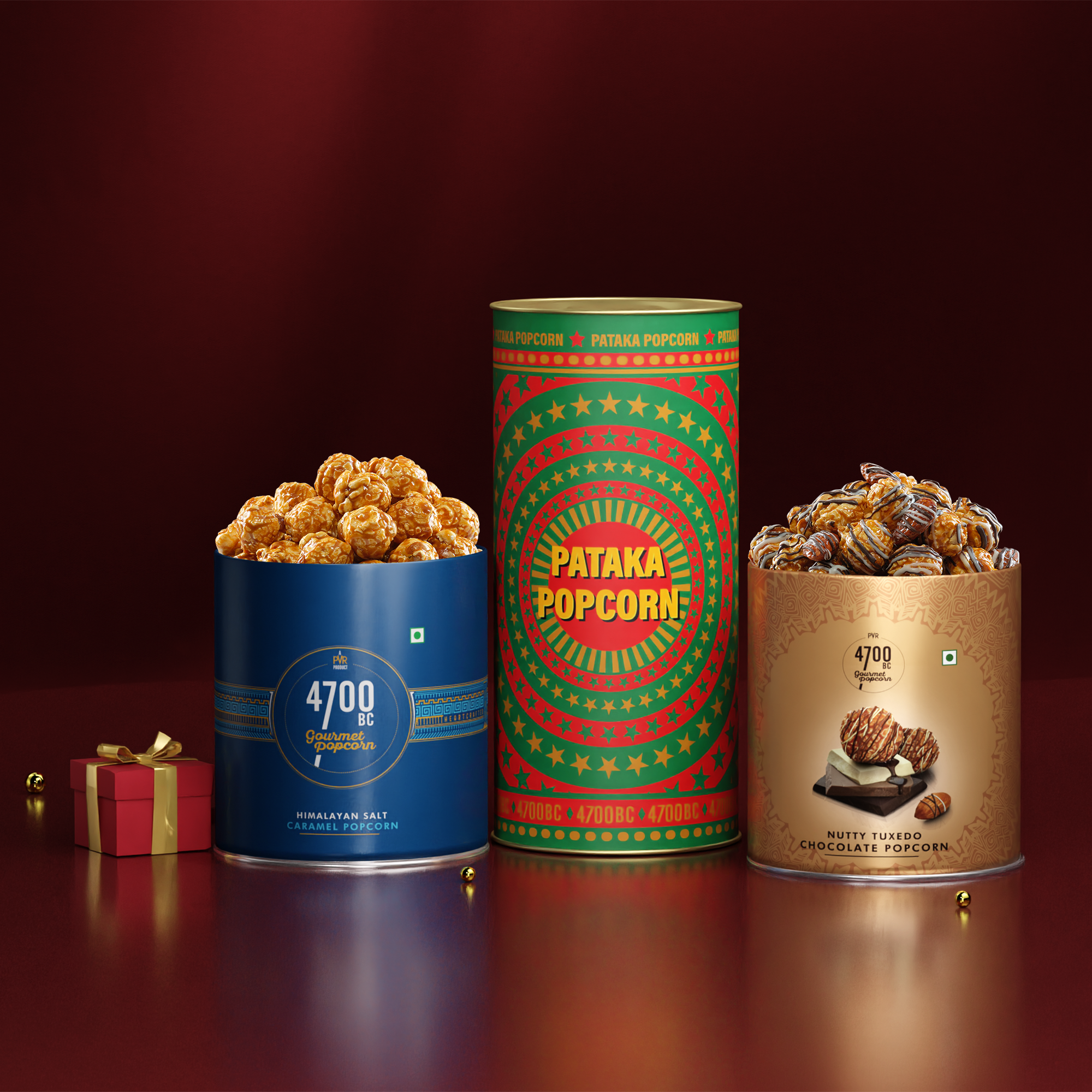 This exclusive combo gift pack brings to you our delicious gourmet popcorn comprising of our bestselling flavours- Himalayan Salt Caramel and Nutty Tuxedo Chocolate popcorn.