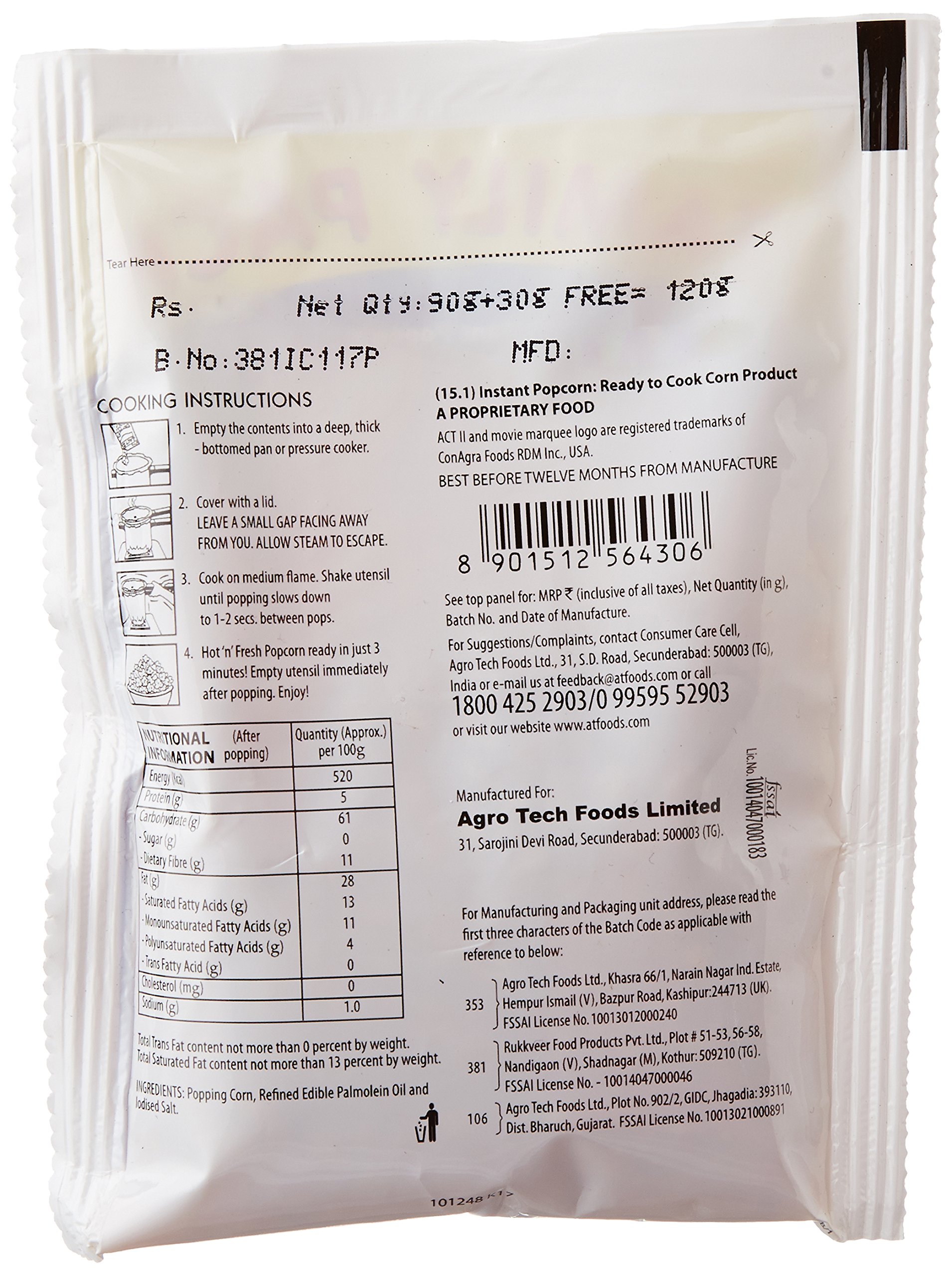 Act II Instant Classic Salted Popcorn , 90g (with Extra 30g)