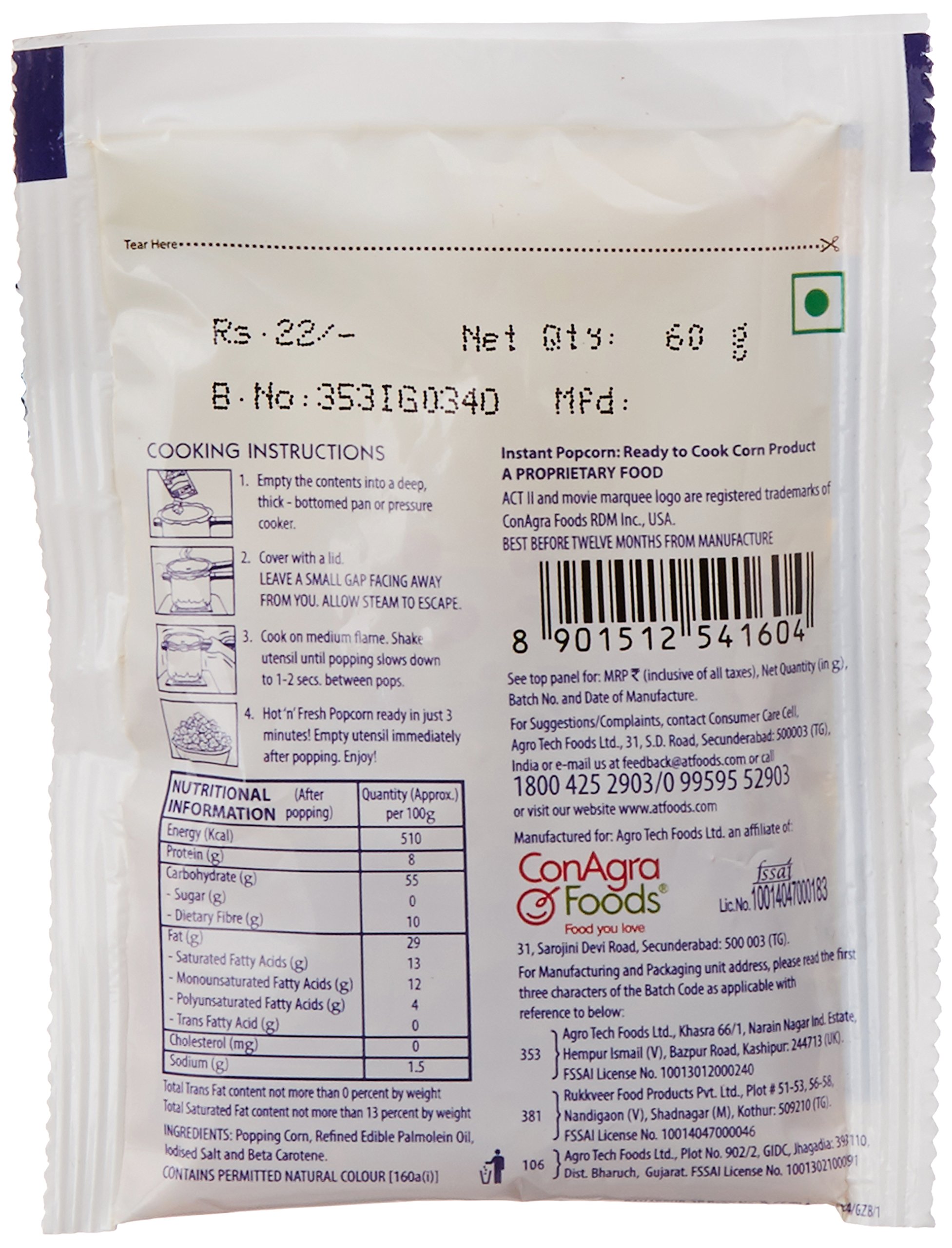 Act II Instant Golden Sizzle Popcorn, 60g