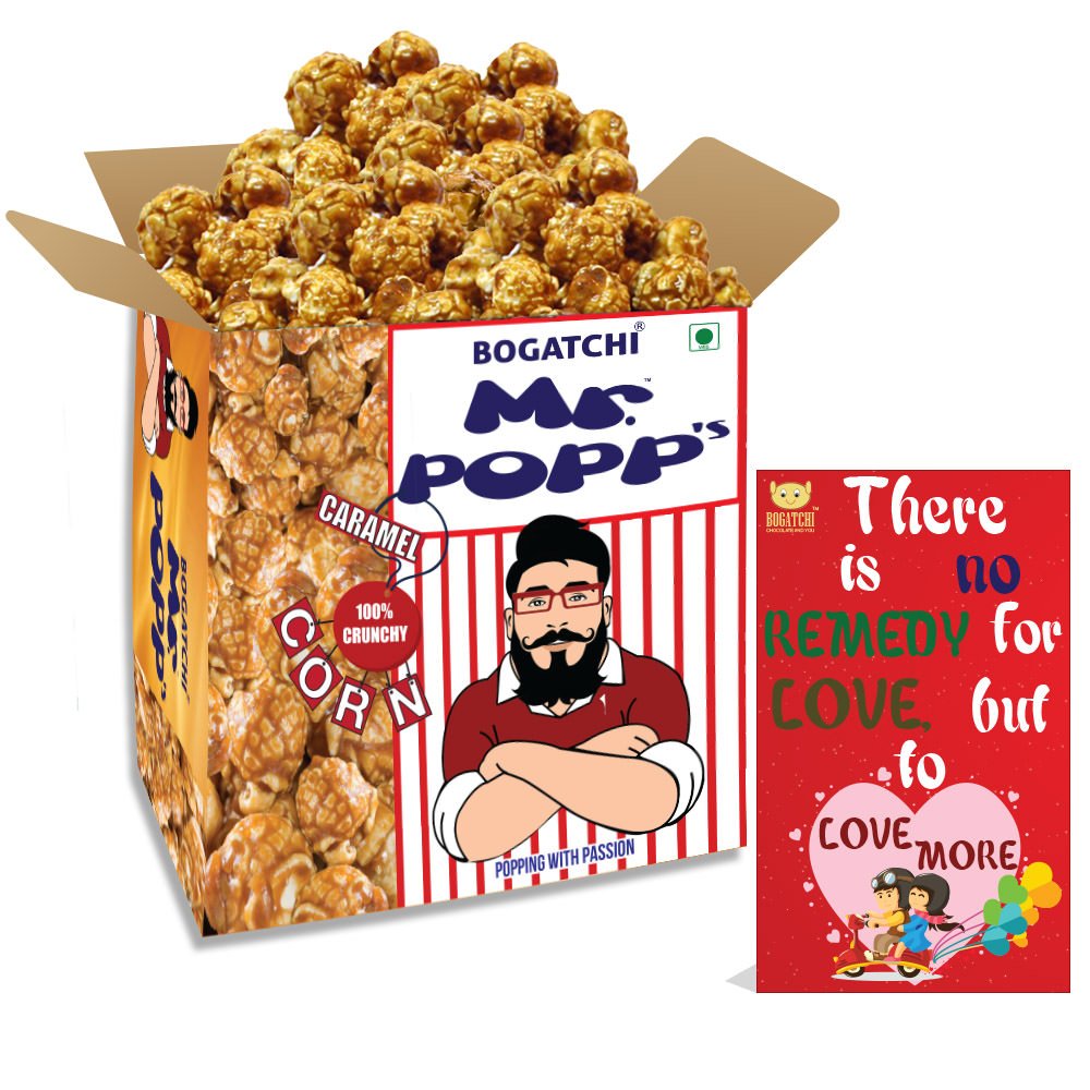 BOGATCHI Mr.POPP's Caramel Popcorn 100% Crunchy Delicious Fully Popped Corns Handcrafted Gourmet Popcorn Snacks Best Anniversary Gift 375g + Free Happy Anniversary Greeting Card