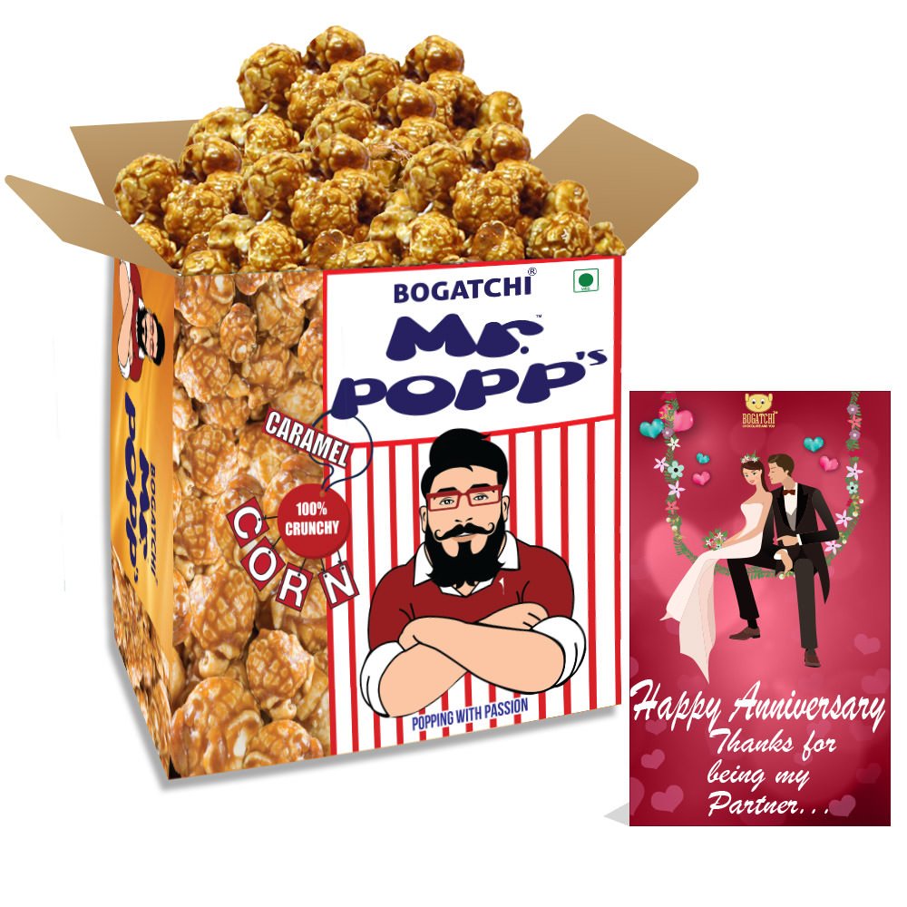 BOGATCHI Mr.POPP's Caramel Popcorn 100% Crunchy HandCrafted Gourmet Popcorn Snacks | NO Microwave needed | Best Movie / TV Time Snack Best Anniversary Gift for Husband 375g + FREE Happy Anniversary Greeting Card