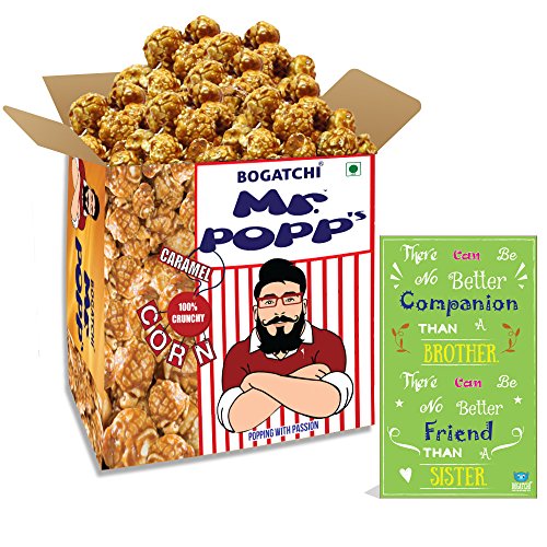 BOGATCHI Mr.POPP's Caramel Popcorn 100% Crunchy HandCrafted Gourmet Popcorn Snacks | NO Microwave needed | Best Movie / TV Time Snack Perfect Rakhi Gift for Boy 375g + FREE Happy Rakhi Greeting Card