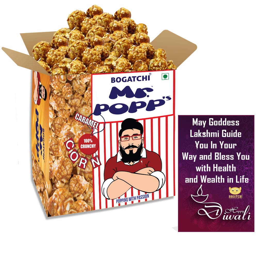 BOGATCHI Mr.POPP's Caramel Popcorn 100% Crunchy Handcrafted Gourmet Popcorn Snacks | Perfect Diwali Gift for Boy 375g + Free Happy Diwali Greeting Card