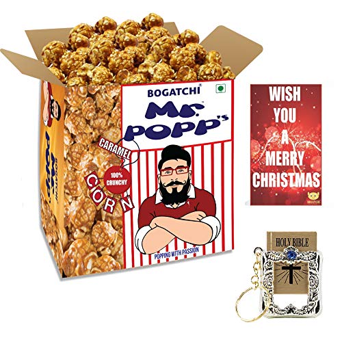 BOGATCHI Mr.PoPP's Christmas Gift Christmas Gourmet Caramel Popcorn Box 379 g + Free Merry Xmas Card + Free Holy Bible Keychain