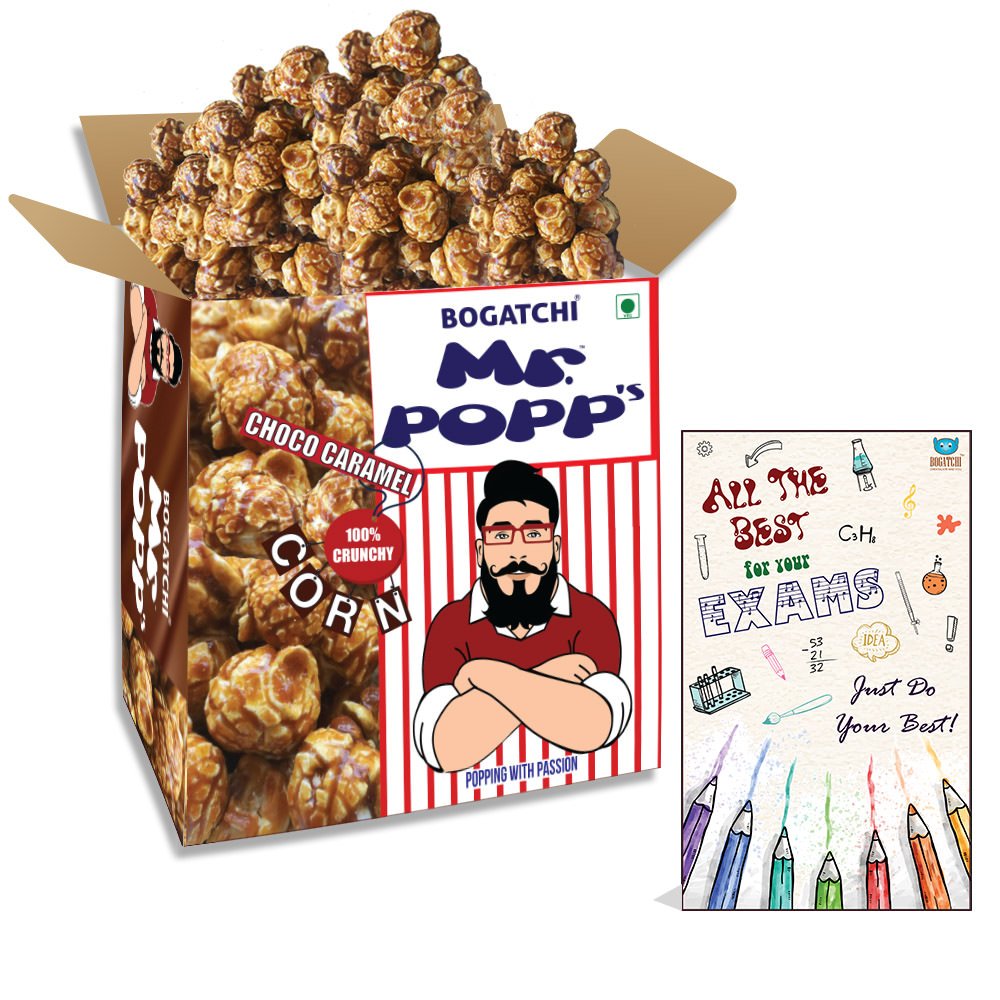 Bogatchi mr. Popp corn are handcrafted in old-fashioned copper kettles one batch at a time this popcorn is a crunchy and buttery caramel delight. Crafted in the India from quality ingredients. This caramelized popcorn is gluten-free cholesterol free and features non-gmo popcorn. It is high in dietary fiber and calcium. This caramel popcorn makes a great snack on the go for school work and home. Perfect snacks for movie time binge watching tv series marathon exam time snacking or just to make your self feel good. Bogatchi mr.Popp corn makes the best gift for celebration occasions like rakhi diwali anniversary birthday x-mas with loved ones. The chocolate caramel popcorn has dark chocolate dripped on the top of caramelized popcorn making these yummy. You will find chocolate on each and every bite of the popped corns. Enjoy with family and friends!