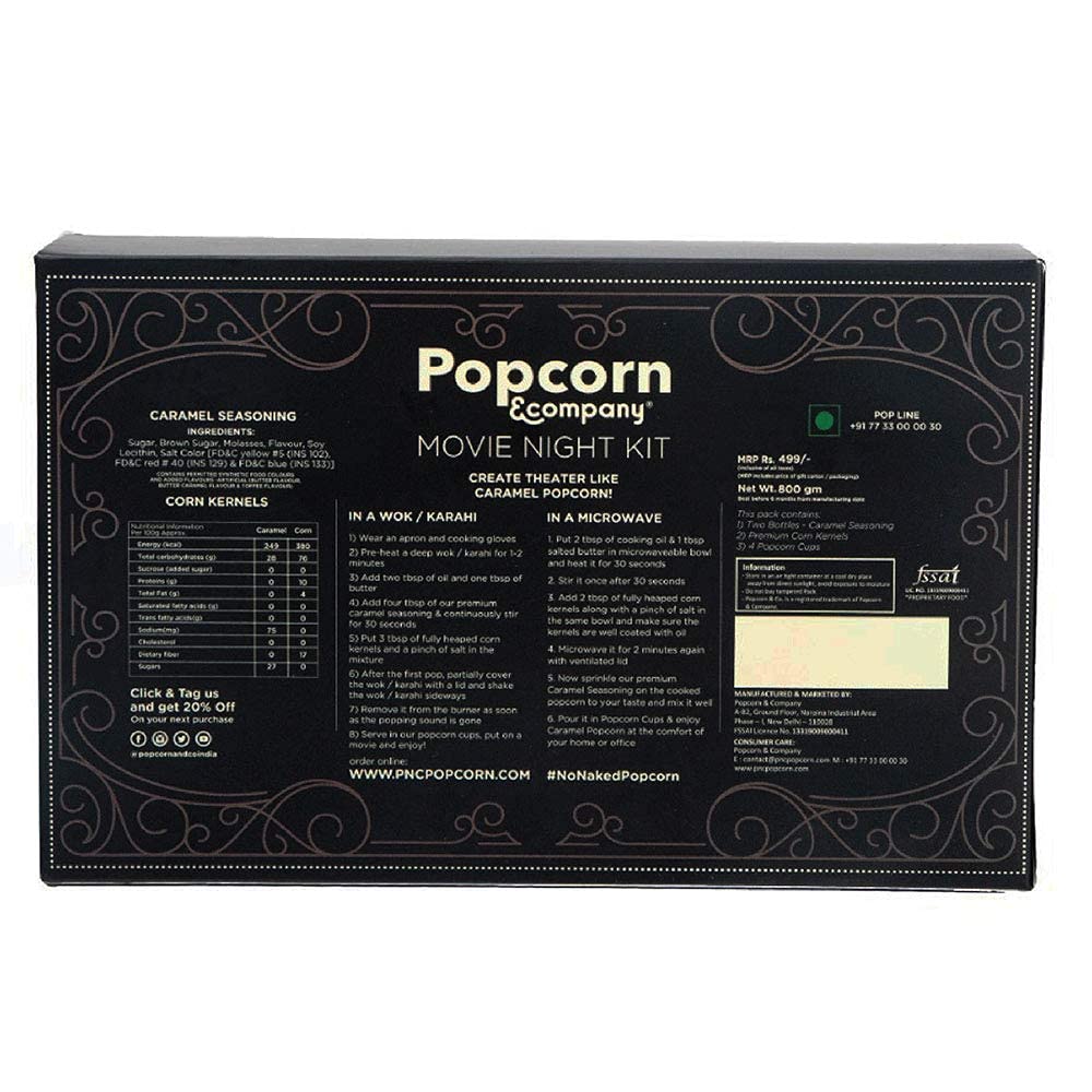 Pack contains Popcorn Kernels Caramel Powder and Popcorn Tubs