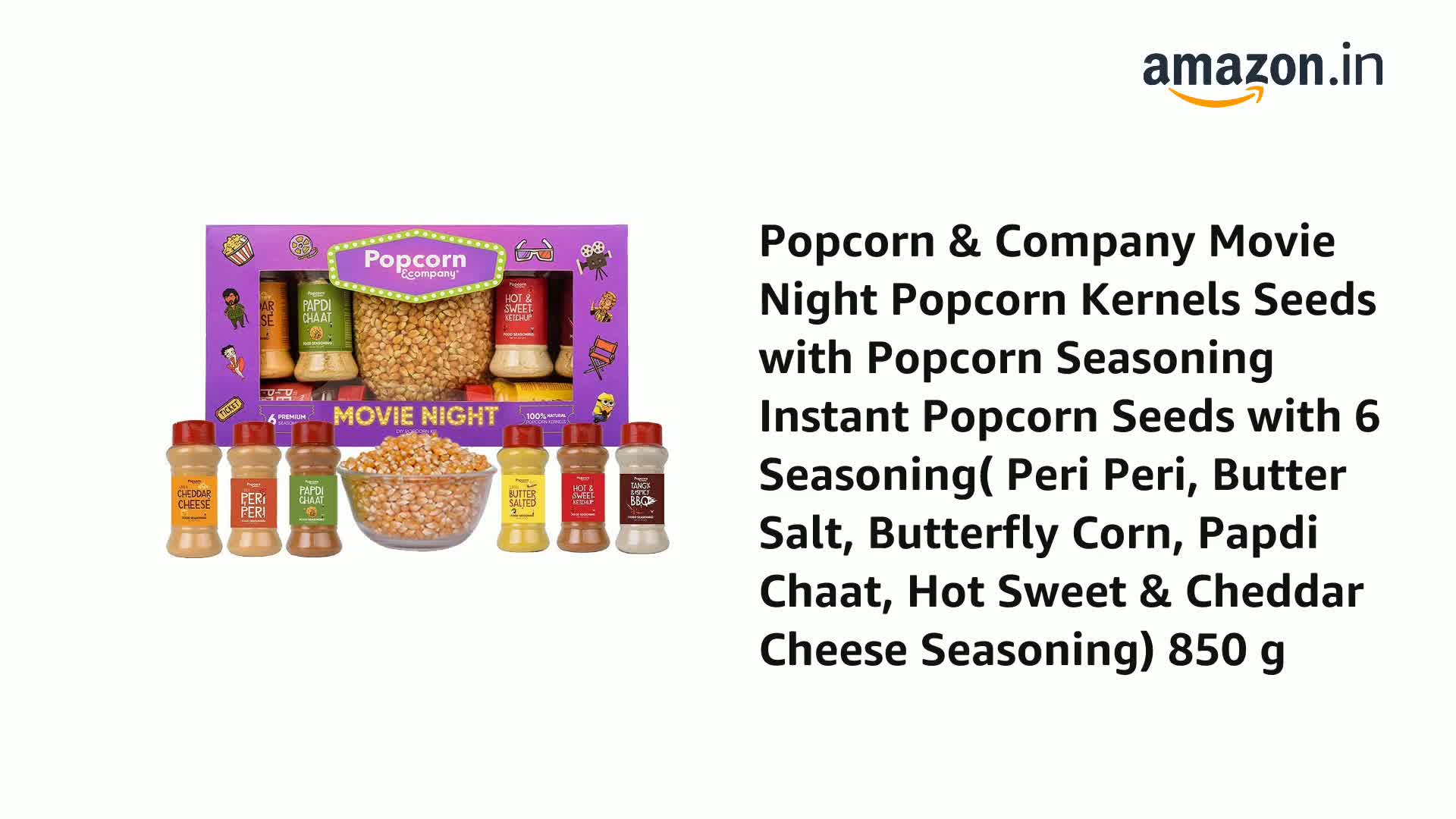 HomeGrocerySnacksPopcornPopcorn & Company Movie Night Popcorn Kernels with 6 Seasonings (Peri Peri Butter Salt Butterfly Corn Papdi Chaat Hot Sweet & Cheddar Cheese) | Instant Popcorn Seeds - 850g | Made with Love and Care Perfect for Movie Nights
