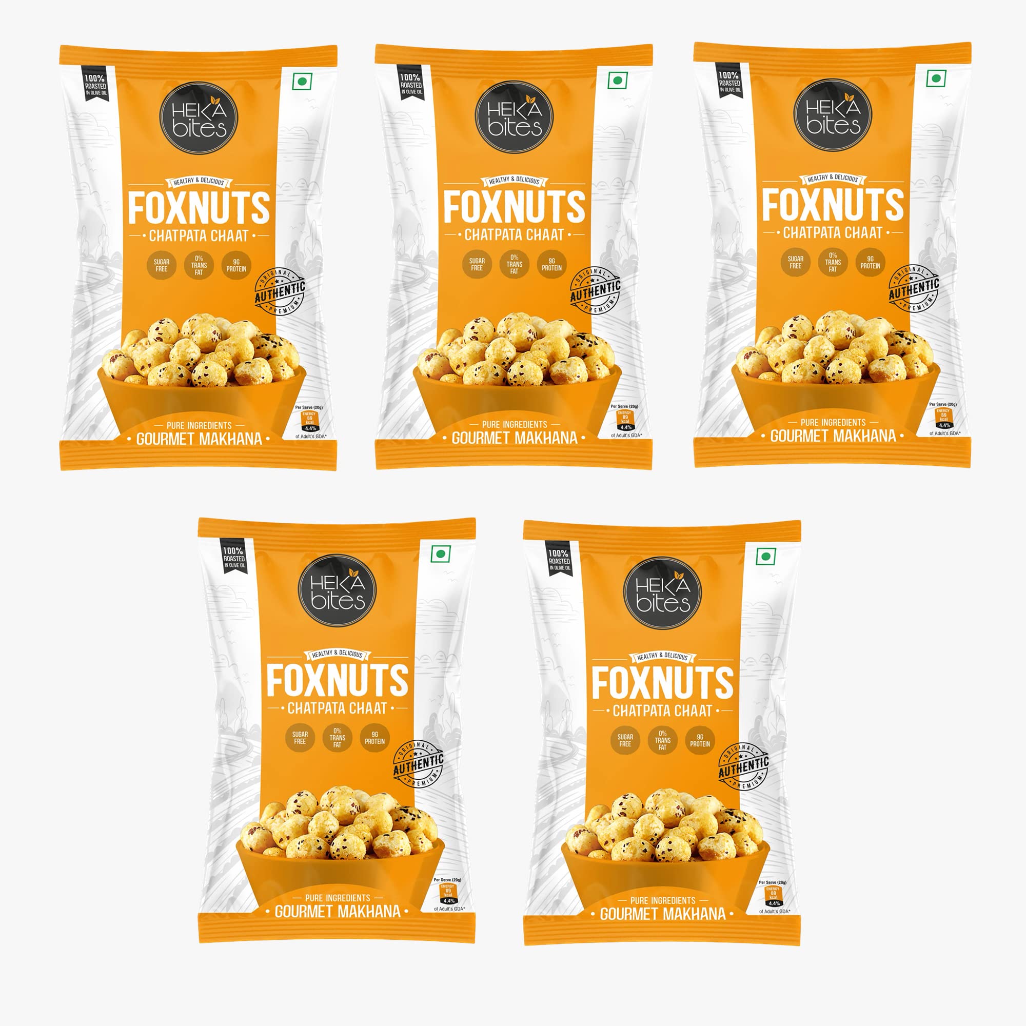 Heka Bites Chatpata Chaat Roasted Makhana 80g (Pack of 5)