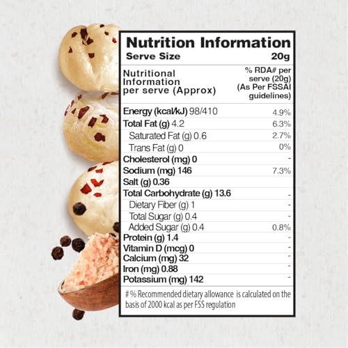 Snack guilt-free with our Poppalicious MakhanaFlavoured naturally and roasted to a crisp light and crunchy taste every process is made with mom's wisdom and love. It is your perfect daily snack for every activity!Feel full longer while boosting your energy! Our quality pops provide you with many nutrients you need for good immunity and great heart health! Low in calories and fat high in protein magnesium potassium