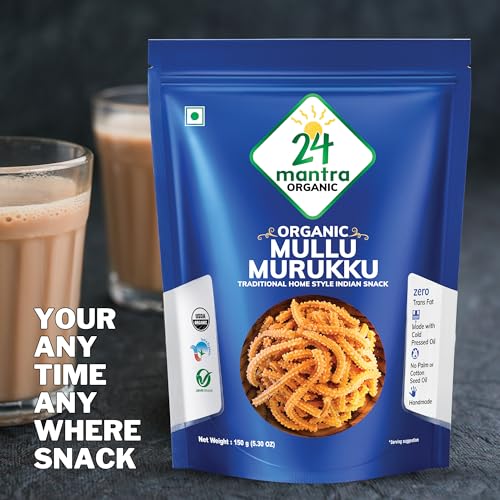 24 Mantra Organic Mullu Murukku brings the traditional flavors of India to your taste buds making it a must-try snack for lovers of Indian cuisine.