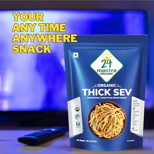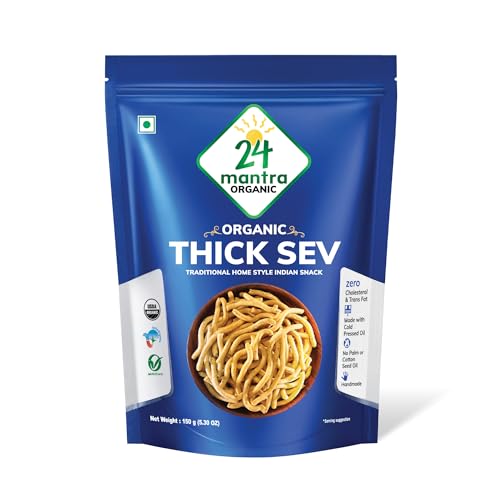 Indulge in the delicious taste and crunchy texture of our thick sev a popular traditional Indian snack. Made from premium-quality gram flour and seasoned with a blend of authentic Indian spices our thick sev is a perfect snack for anyone who loves the bold and vibrant flavors of Indian cuisine.