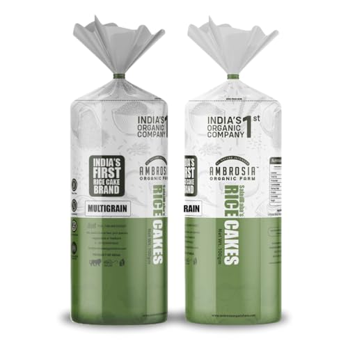 Rice cake and treat yourself with the goodness of 100% certified organic wholegrain rice. Try it with any of your bread Spreads or make your own recipe they will make a scrumptious treat. Our Rice Cakes are made with 100% Organic natural ingredients without any preservatives or additives to make it ideal for everyone. Everyone can enjoy the benefits of Wholegrain straight from the Packet. Better shelf life than bread So will always be there in your pantry when you need it. Crunchy and healthy a win for mom and kids. Great Tea Time Snack or even a filling meal for weight. We had to bring these internationally acclaimed rice cakes to everybody in India because rice cakes are a healthy alternative to bread as most white bread contain an unhealthy amount of sugar. Rice cakes will help weight conscious people control their diets as this is a gluten free way to enjoy an in between meal snack without spoiling your appetite. At Ambrosia Organic Farm we use traditional expensive varieties of whole rice. Polished rice is only starch hence we do not use polished rice or hybrid rice. We use organic rice with its skin which makes cakes tasty. The organically grown types of rice we use are Dorga rice Mysore rd rice Trishul brown rice Sona massori and Koti rice. We use at least two or three varieties in each batch plus a millet.