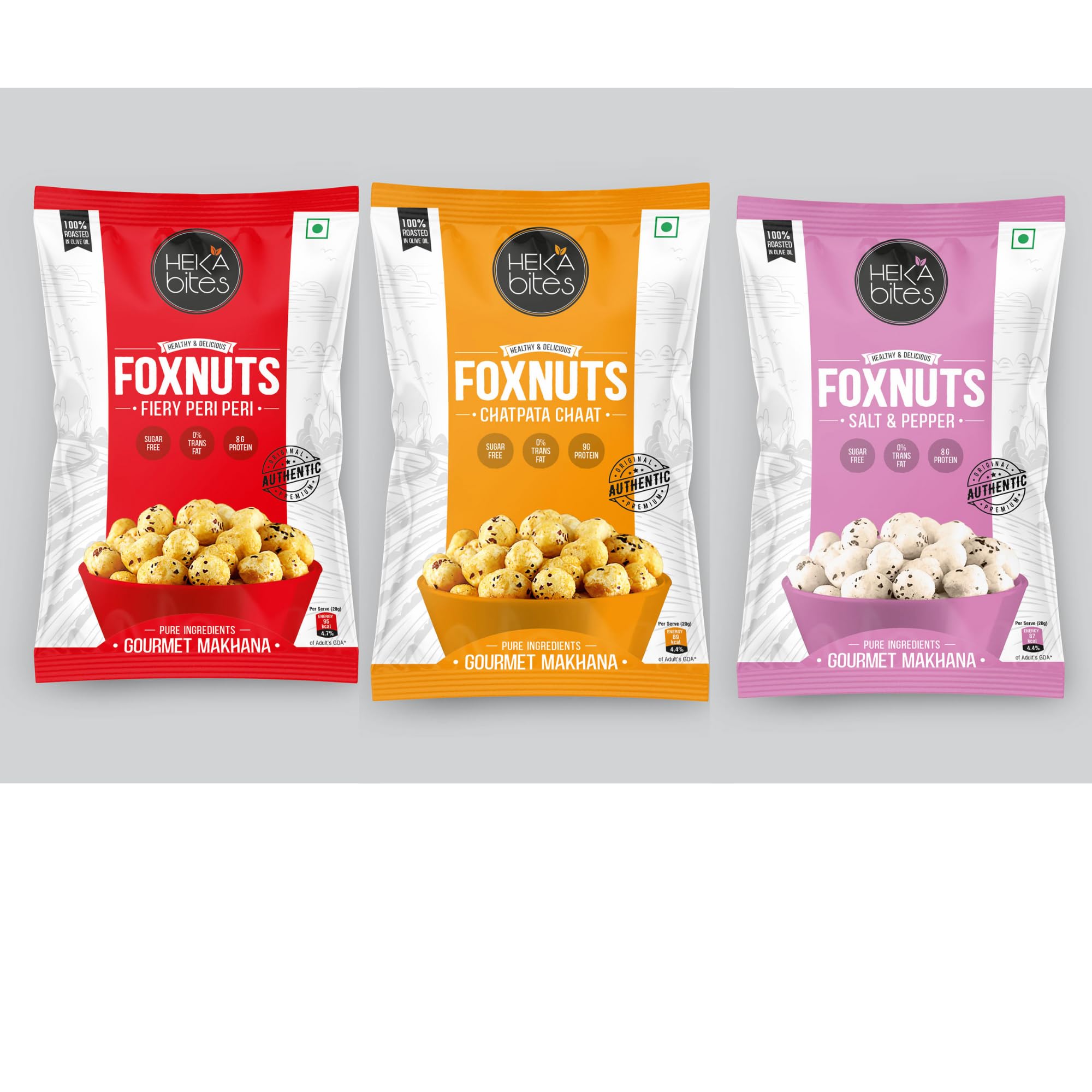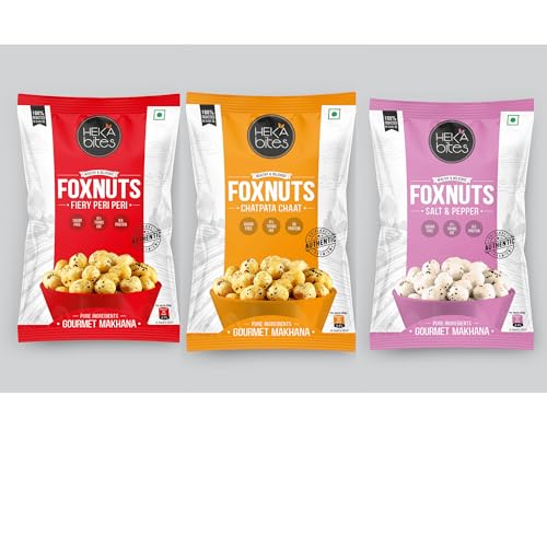 Assorted Roasted Foxnuts (Pack of 3) 80g - Himalayan Pink SaltChatpata chaat Fiery Peri Peri