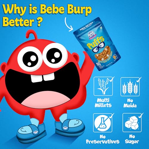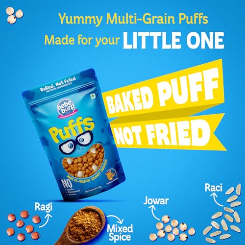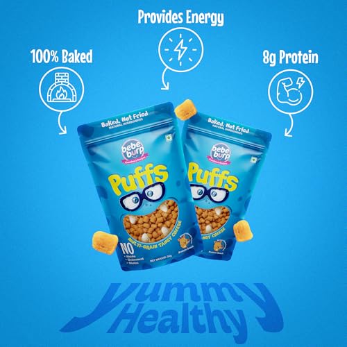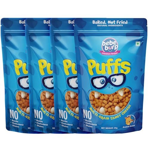 BE'BE' BURP Healthy Puff Snacks | Multigrain Tangy Cheese |Baked Puffs, Not Fried, Protein Snacks | No Maida & Gluten-Free | Travel-Friendly | 35gms Each (Pack of 4)