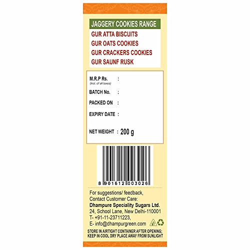 Wholesome and delicious Gur Atta Biscuits with the natural sweetness of organic jaggery. This junk-free snack is mindfully made to nourish you and your family so that you can enjoy it without feeling guilty. Made after a careful selection of ingredients we at Dhampur Green offer healthy snacks that digest slow avoiding any sudden spikes in blood sugar levels. Enjoy falling in love at the first bite! No Preservatives or Artificial Flavours.
