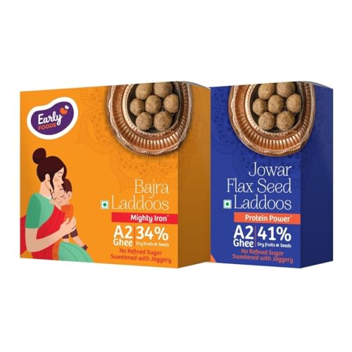 Early Foods Assorted Pack of 2: A2 Ghee Bajra & Jowar Laddoo | Flax Seed Laddu | Dry Fruits Laddu | Gluten Free Laddu | Pregnancy Laddu | postpartum ladoo