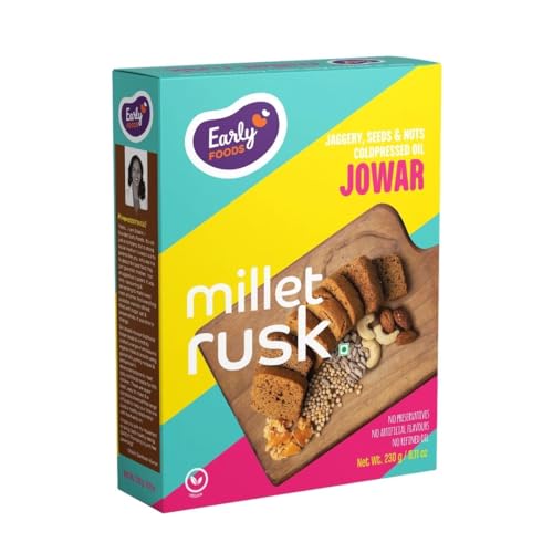 Early Foods - Jowar Rusks | Millet Rusk Sugar Free | No Maida Rusk | Rusks for Kids | Millet Toast Biscuits Rusk 230g
