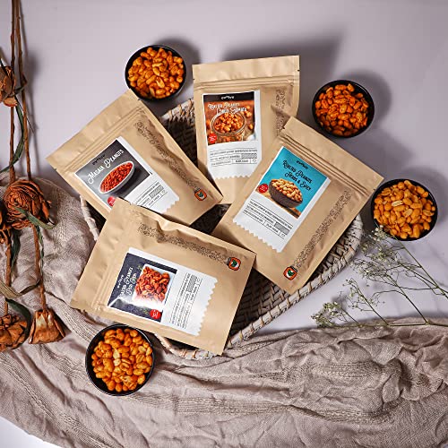 Evolve Roasted Peanuts Healthy Snacks Combo | Gluten Free High Protein Rich Fiber | Masala Herbs & Spicy Chilli Tomato Peri Peri Flavors | Crunchy Mungfali Singdana 100g Pack of 4