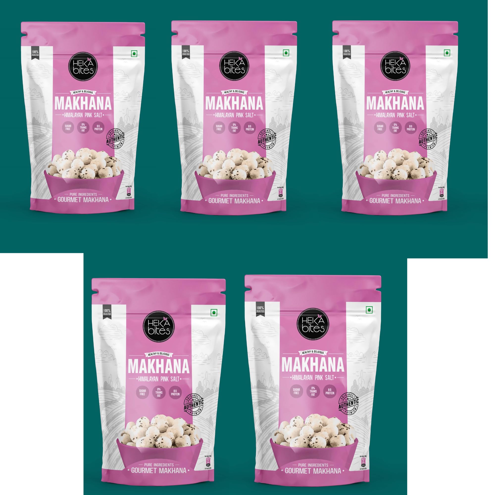Heka Bites Himalayan Pink Salt Roasted Fox Nuts (Makhana) is the quintessential go to Makhana. This lightly flavoured packet will take you back to your home roasted Makhanas. These handpicked Makhanas are slow roasted with a drizzle of olive oil and a lot of love. Crunchy Makhanas are then seasoned to perfection using our in house expert's secret spice blend. Handcrafted by us - for you!! Let the magic begin!!!