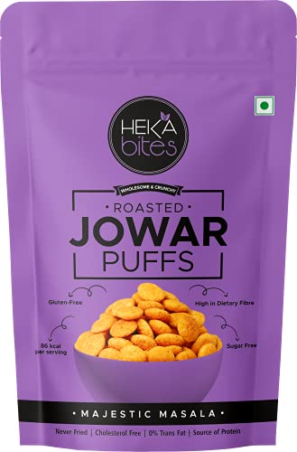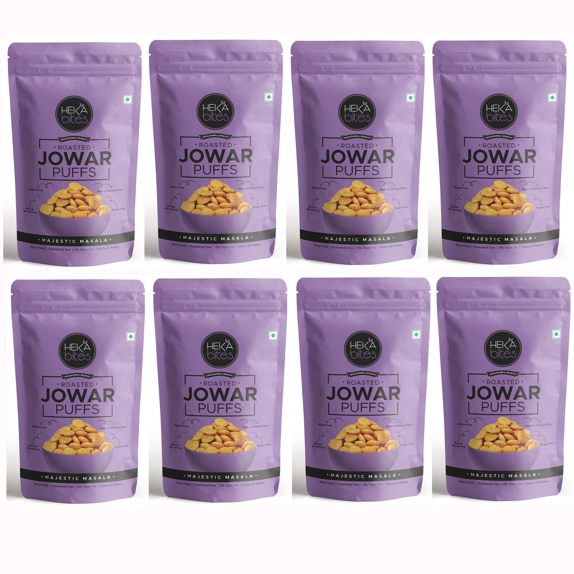HEKA bites Roasted Jowar Puffs Majestic Masala - Pack of 8 | 86 Kcal | Made with 80% Jowar| Healthy Snack| Sugar Free| Cholesterol Free| Gluten Free (40g x 8)